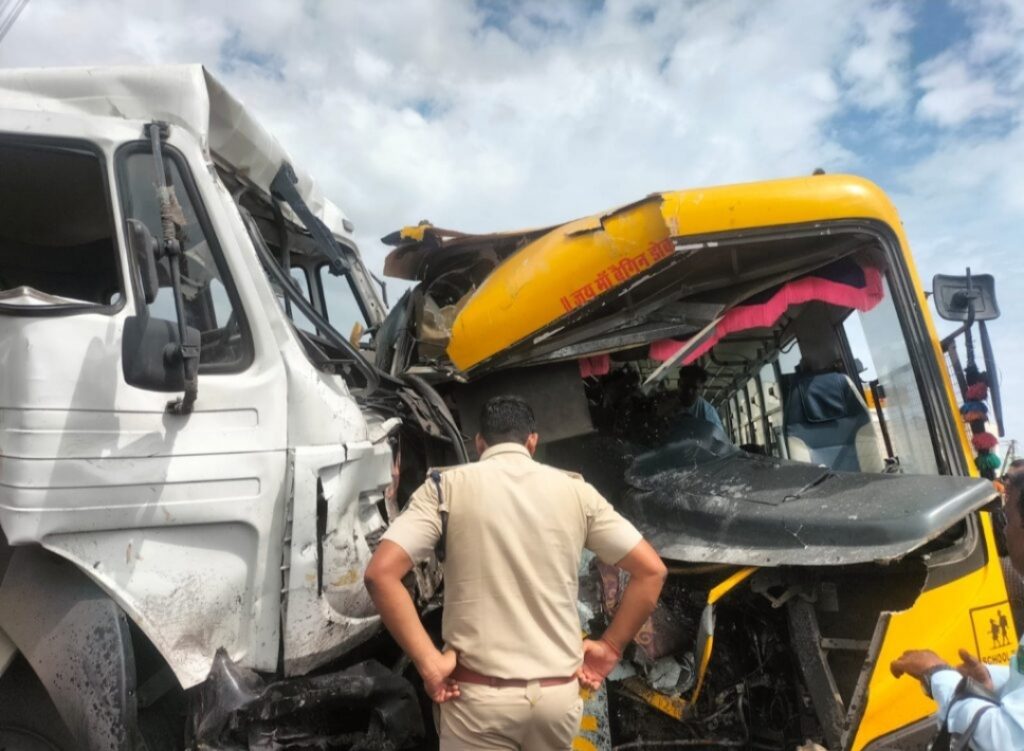 स्कूल की छुट्टी के बाद बच्चों को छोड़ने जा रही थी बस