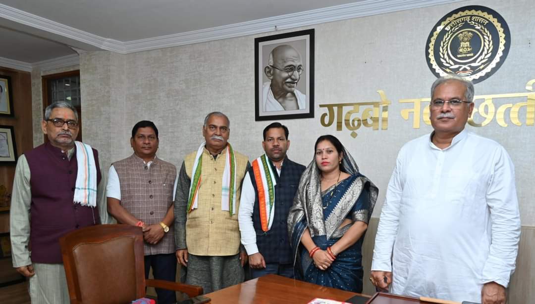 सारंगढ :- प्रदेश के पूर्व यशस्वी मुख्यमंत्री विकास पुरूष भुपेश बघेल से जिला कांग्रेस कमेटी अध्यक्ष अरुण मालाकार, गौ सेवा आयोग सदस्य पुरुषोत्तम साहू वरिष्ठ कांग्रेसी संजय दुबे, विधायक प्रतिनिधि गनपत जांगड़े, के साथ सौजन्य मुलाकात कर कुशल नेतृत्व और छत्तीसगढ़ महतारी के भरपूर सेवा और छत्तीसगढ़िया संस्कृति व गढ़बो नवा छत्तीसगढ़ के परिकल्पना को साकार करने के लिए पूर्व मुख्यमंत्री भूपेश बघेल को बधाई व शुभकामनाएं दिए और आगे के भूमिका के लिए आशीर्वाद लिए।