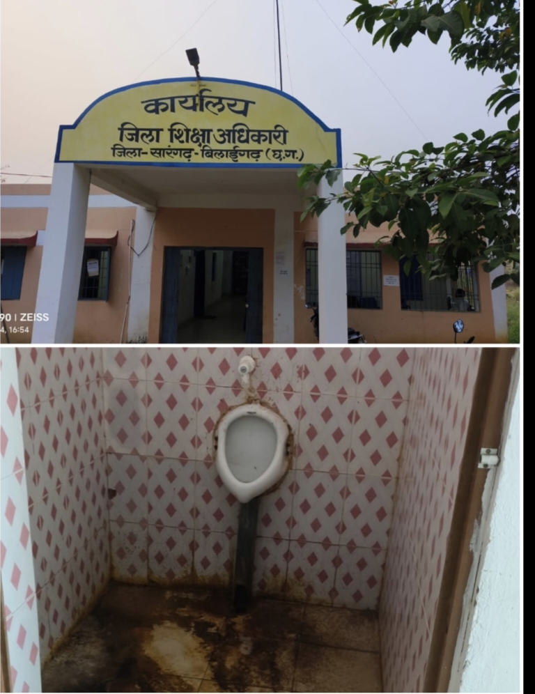 जिसमे आप कार्यालय कि तस्वीर देखकर आप भी हैरान हो जाएंगे शौचालय के दयनीय हालत अनदेखी के चलते ऐसे नहीं हो रहे हैं बल्कि अपने आप को शिक्षा का देवता कहे जाने वाले जिला शिक्षा अधिकारी के कार्यालय मे पदस्थ लोगो ने ही गन्दगी फैला रहे हैं, इस कार्यालय मे अगर आप आएँगे तो आपको आसानी से पान के छींटे जगह जगह दीवालों पर बेसिन, एवं शौचालयों मे दिख जाएंगे इस कार्यालय पर जैसे ही कदम रखेंगे आपको गन्दगी का आभास हो जाएगा, जिससे जिम्मेदारो के लापरवाही के चलते फ़ैल सकती है बड़ी संक्रमण लोग भी पड़ सकते हैं बीमार, स्वच्छता को लेकर शासन के पैसा को साफ सफाई के नाम से लाखो रुपए व्यय करने कि बात कह रहे हैं परन्तु यहाँ पर साफ सफाई सिर्फ कागजो मे ही रह गया है, अगर कार्यालय मे व्यय करने कि राशि का जाँच किया जाए तो बड़ी भ्रष्टाचार उजागर हो सकती है, अब देखना ये होगा कि खबर प्रकाशित होने के बाद जिम्मेदारो पर क्या कार्यवाही होता है या इसे ठन्डे बस्ते मे डाल दिया जाता है
