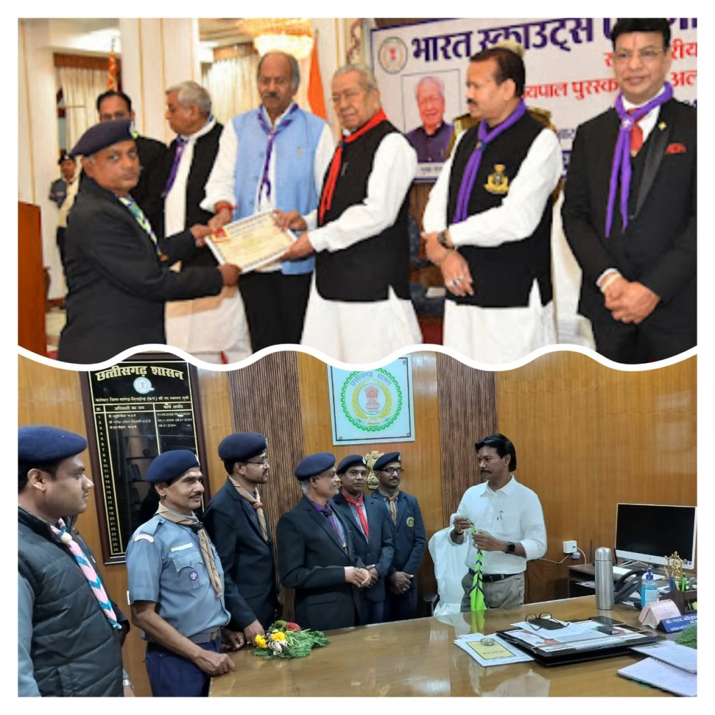 सारंगढ़ बिलाईगढ़ :- नवीन जिला सारंगढ़ बिलाईगढ़ के सक्रिय स्काउटर शंकर लाल साहू डीटीसी स्काउट जिन्होंने स्काउटिंग के क्षेत्र में एक अलग पहचान बनाया। निरंतर 35 सालों से स्काउटिंग के गुण सीख रहे है तथा बच्चों व शिक्षकों को स्काउटिंग सीखा रहे है। देश सेवा, जनसेवा ईमानदारी पूर्वक करते हुए स्काउटिंग को हमेशा आगे बढ़ाने का प्रयास किया उनकी मेहनत लगन को राज्य ने जाना व समझा। उनके इस कार्य को भारत स्काउटस एवं गाइड्स छत्तीसगढ़ ने श्री शंकर लाल साहू को दीर्घकालीन सेवा अलंकरण से सम्मानित किया।यह सम्मान माननीय विश्वभूषण हरिचंदन राज्यपाल, माननीय बृजमोहन अग्रवाल शिक्षा मंत्री छग शासन, सत्यनारायण शर्मा राष्ट्रीय उपाध्यक्ष स्काउट, राजेश अग्रवाल कार्यकारी अध्यक्ष राज्य मुख्यालय स्काउट, विनोद सेवनलाल चंद्राकर राज्य मुख्य आयुक्त, शिक्षा सचिव जी के हाथों प्रदान किया गया।