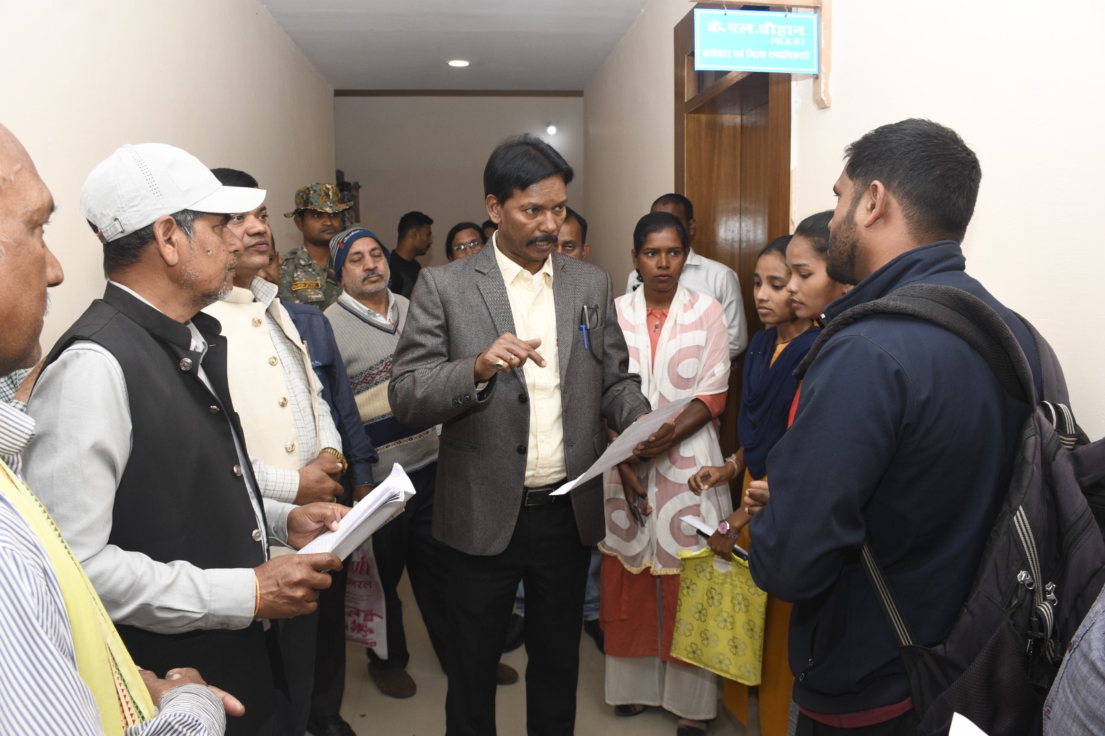 सारंगढ़ बिलाईगढ़ :- कलेक्टर श्री के.एल. चौहान ने कलेक्टोरेट परिसर में जनदर्शन में नागरिकों के आवेदन पर कार्यवाही के आश्वासन दिए। कलेक्टर श्री चौहान ने लाइन में खड़े आवेदकों को उनके पास जाकर उनकी समस्याएं सुना। जनदर्शन में कलेक्टर को प्रधानमंत्री आवास, कब्जा हटाने, वन अधिकार पत्र प्रदान करने, धान बोनस, सारंगढ़ के साहनी बस्ती की समस्याओं, भटगांव नहर निर्माण का मुआवजा, ठेकेदार दीपक अग्रवाल के द्वारा जबरन सड़क निर्माण पर रोक लगाने, बोनस राशि भुगतान, किसान ऋण पुस्तिका, अनुकंपा नियुक्ति, भटगांव के मुक्तिधाम को तोड़कर व्यावसायिक कांप्लेक्स निर्माण के विरुद्ध कार्यवाही, पेट्रोल पंप स्थापना के लिए एनओसी आदि के संबंध में आवेदन प्राप्त हुए।