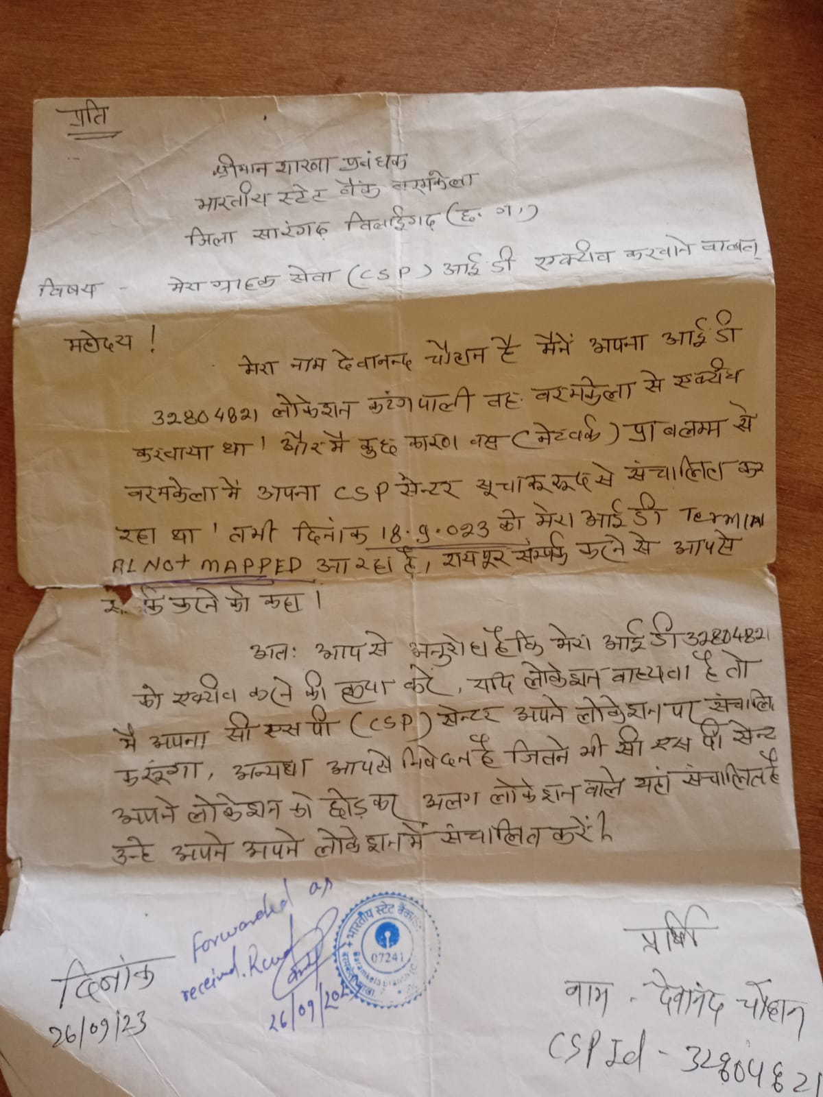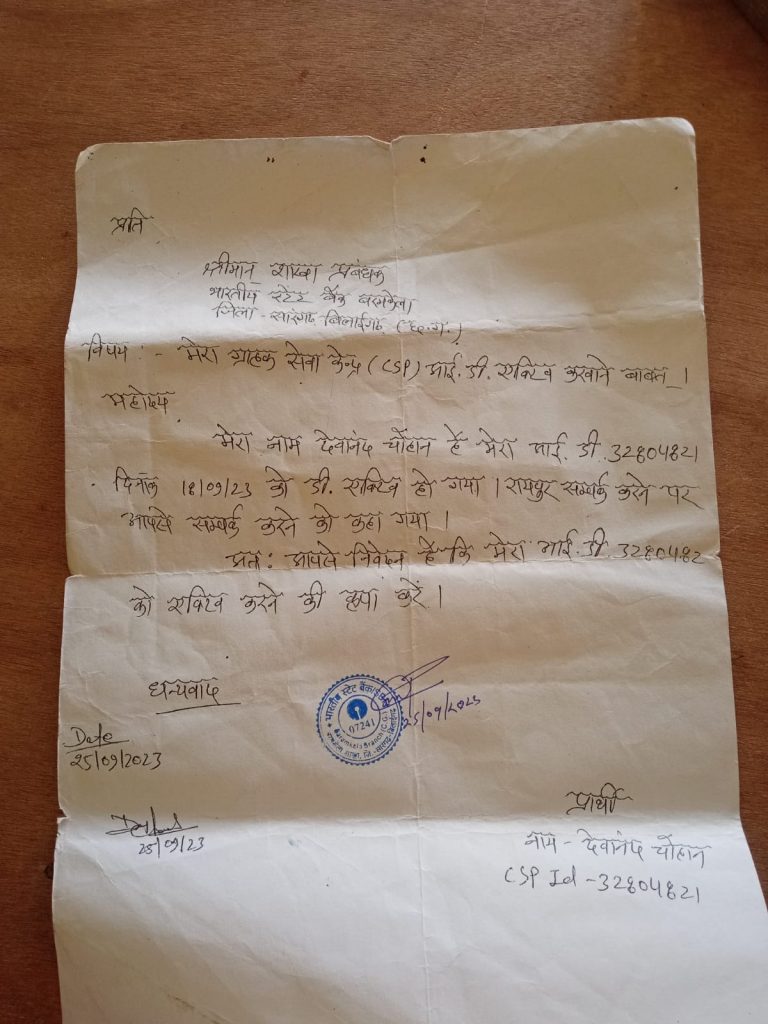 सारंगढ़ बिलाईगढ़ :- बरमकेला मे भारतीय स्टेट बैंक का ग्राहक सेवा केंद्र संचालित है जिसमे कटंगपाली निवासी देवानंद चौहान भी अपना csp ग्राहक सेवा केंद्र सुचारु रूप से चला रहा था जिसको लेकर बरमकेला मे चलाने कि बात को लेकर विभाग ने आईडी को इनएक्टिव कर दिया है जिसको लेकर स्टेट बैंक बरमकेला मे शिकायत दर्ज कर दिया है