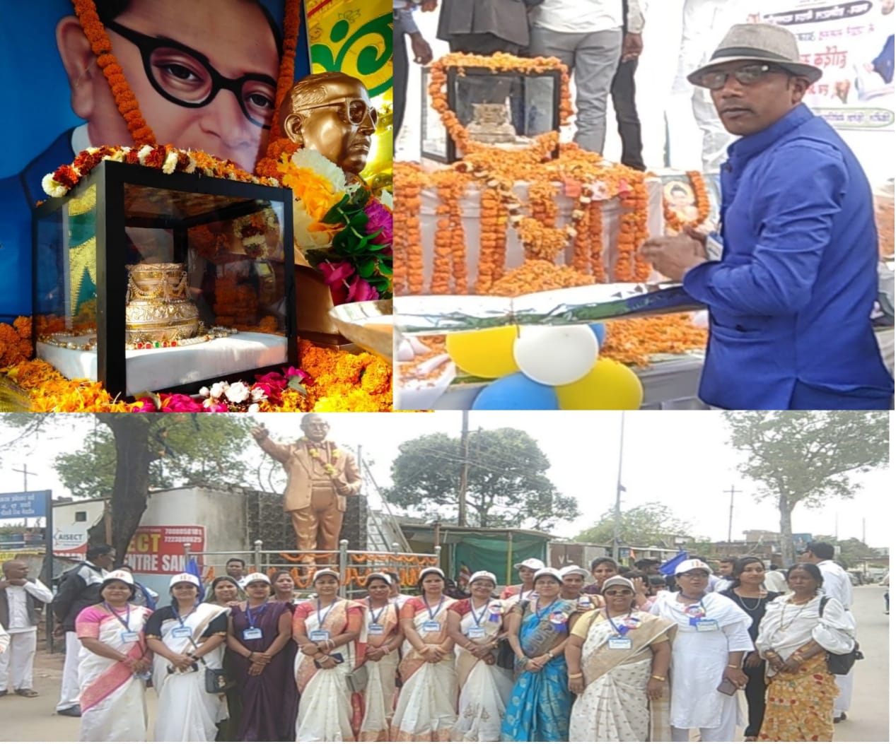 सक्ति / मालखरौदा :- छत्तीसगढ़ में पहली बार बोधिसत्व डॉ.बाबा साहेब भीमराव अम्बेडकर दर्शन कार्यक्रम मालखरौदा हॉस्पिटल मैदान में दिनांक 25 फरवरी 2023 को त्रिरत्न बौद्ध महासंघ छत्तीसगढ़ के द्वारा धम्म प्रचार प्रसार अभियान के अंतर्गत अस्थि कलश दर्शन के लिए आया जिसमें मालखरौदा ब्लाक इकाई के समस्त मानव समाज एवं बाबा साहब के अनुयायियों ने इस महान पल के साक्षी बने,संविधान निर्माता के अस्थि दर्शन का सौभाग्य प्राप्त करके क्षेत्र के बहुजन समाज मूलनिवासियों एवं समस्त अंबेडकर प्रेमियों के लिए अभूतपूर्व क्षण रहा