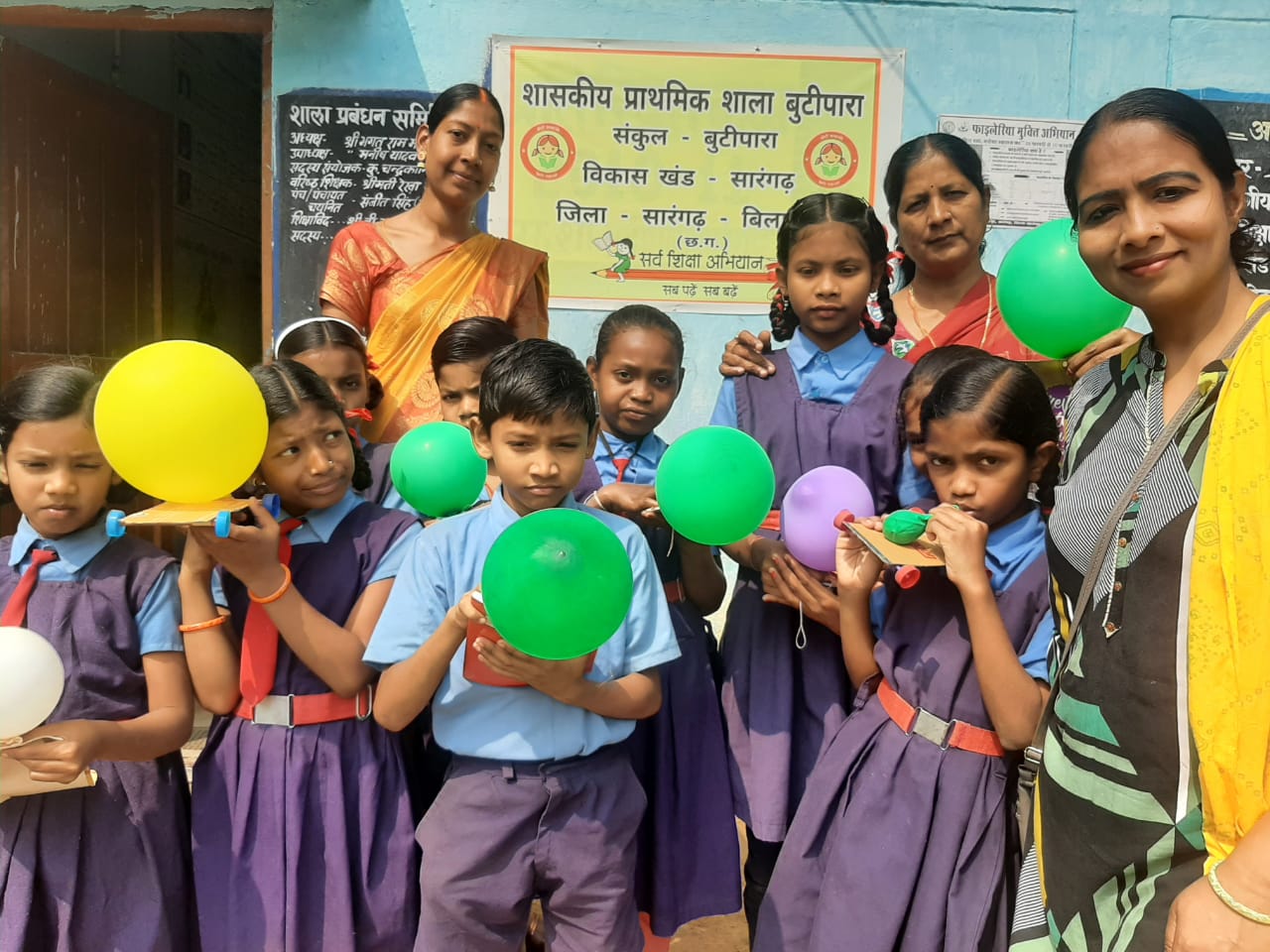 इसके लिए प्राशा बुटीपारा में कबाड़ से जुगाड़ कर सामग्री पुराने खिलौने, प्लास्टिक बॉटल, गत्ते के टुकड़े और गुब्बारा आदि एक दिन पहले एकत्रित किये गए । इसके बाद यह गुब्बारा कार बनाया जा रहा है। इससे विद्यार्थियों में सृजनात्मक क्षमता की वृद्धि हो रही है।