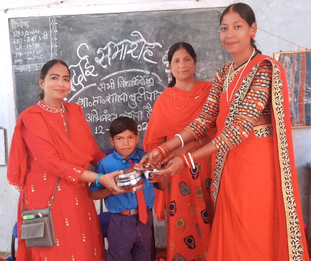 शासकीय प्राथमिक शाला बुटीपारा में कक्षा पाँचवीं के बच्चों को दी गई विदाई