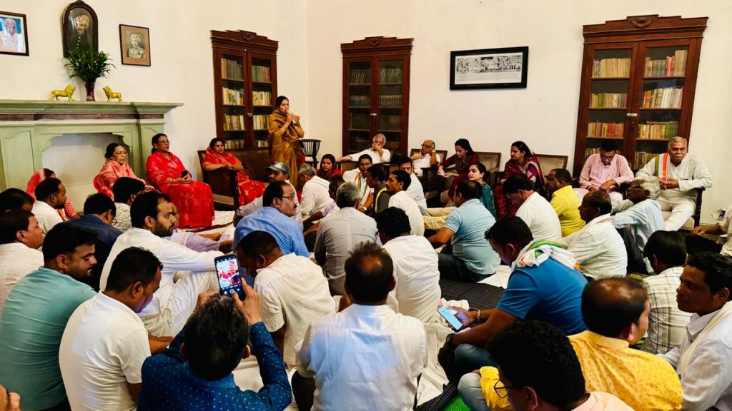 जिला कांग्रेस अध्यक्ष अरुण मालाकार, विधायक श्रीमती उत्तरी जांगड़े व कांग्रेस प्रत्याशी डॉ मेनका देवी सिंह एवं समस्त वरिष्ठ जन पदाधिकारी एवं कार्यकर्ताओं की बैठक पीसीसी के मार्गदर्शन में की जा रही है इसी कड़ी में आज सारंगढ़ गिरी विलास पैलेस में आवश्यक बैठक आहूत की गई जिसमें चुनाव प्रचार प्रसार को लेकर विस्तृत चर्चा किया गया साथ ही भाजपा के झूठे वादों को लेकर आम जनता तक पहुंछाने रणनीति बनाई गई और सभी कार्यकर्ता पदाधिकारी वरिष्ठ जन एकजुट होकर कांग्रेस प्रत्याशी को भारी बहुमत से विजई बनाने संकल्प लिए इस आवश्यक बैठक में प्रमुख रूप से जिला कांग्रेस अध्यक्ष अरुण मालाकार,श्रीमती उत्तरी जांगड़े विधायक सारंगढ़, कांग्रेस प्रत्याशी श्रीमती डॉक्टर मेनका देवी सिंह एवं पूर्व सांसद राजा साहब सुश्री पुष्पा देवी पूर्व विधायक श्रीमती पदमा मनहर,वरिष्ठ नेता राम अवतार अग्रवाल, ब्लॉक कांग्रेस अध्यक्ष पुरुषोत्तम साहू,डॉ परिवेश मिश्रा,श्रीमती सुनीता विष्णु चन्द्रा, प्रदेश कांग्रेस कमेटी सदस्य सूरज तिवारी घनश्याम मनहर,गनपत जांगड़े,जिला पंचायत सभापति श्रीमती अनिका विनोद भारद्वाज,श्रीमती सीता चिंता पटेल,श्रीमती मंजू लता आनंद,रामनाथ सिदार राकेश पटेल,श्रीमती सरिता गोपाल,अजय बंजारे,विनोद भारद्वाज शुभम वाजपेई, धजाराम पटेल,महेंद्र गुप्ता, राजकमल अग्रवाल,सु श्री कुलिशा मिश्रा ,परमानंद पटेल सुभाष पटेल, गोरा लाल पटेल, सरिता मल्होत्रा, चमार सिंह राजपूत,पीतांबर पटेल किशोर निराला, विष्णु नारायण चन्द्रा, कलश राम साहू,लल्लू निषाद,हेमंत चन्द्रा शंकर चन्द्रा, अरविंद सारथी शिव निषाद, किशोर शर्मा सम्मेलाल बंजारे,किरण नंदू मल्होत्रा,दामोदर प्रसाद देवांगन,रमेश पटेल कमलकांत यादव,राकेश जाटवार,कमलकांत निराला, नीरज यादव, सुखचंद यादव अश्वनी चन्द्रा, रमेश खूंटे दिलीप कुमार शर्मा, प्रेमलाल बसंत,चेतन जांगड़े, अजय लक्ष्मे,शंकर चौहान,आनंद राम,दिशाराम साहू,श्रवण कुमार थुरिया, आशीष कुमार, दूर सिंह राठिया,पुष्कर चन्द्रा जितेंद्र चन्द्रा,शेष देव पण्डा छबिलाल जायसवाल, आसाराम सिदार,साधुराम चन्द्रा, रेशम लाल चन्द्रा, नंद कुमार खुटे,जितेंद्र कुमार टंडन गोपाल आदित्य, विधाता पटेल,फिरतू माली, होरी माली बाबूलाल माली,चतुर कहरा डीवीसी महेश, छेदी भोई संतोष यादव, सदानंद चौहान लोचन पटेल, परमानंद, सूरज प्रकाश चौहान, मोनू निषाद बालमुकुंद जायसवाल, सत्यवान साहू,भुनाऊ राम अनुज साहू, गौतम सिंह पटेल, ताराचंद पटेल, सागर दीवान, सुगम निराला, दीपक दास महंत,हरिश्चंद्र एवम समस्त कार्यकर्त्ता उपस्थित रहें।