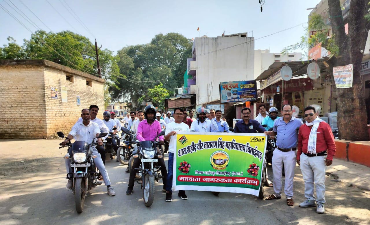 सारंगढ़ के खेलभाठा मैदान से और बिलाईगढ़ में शासकीय शहीद वीर नारायण सिंह महाविद्यालय से मतदाता जागरूकता बाइक रैली की शुरुआत की गई।