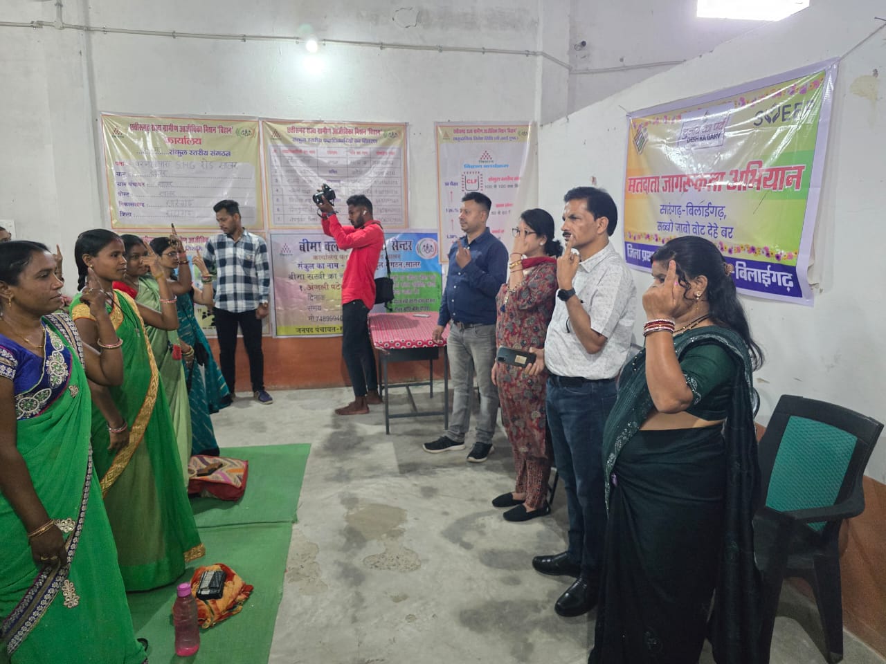 जिसमें कलस्टर समूह की महिलाओं द्वारा स्वीप कार्यक्रम के तहत रंगोली और अपने हाथो में मेहदी से स्वीप लिखवाकर लोगो को वोट डालने के लिए उत्साहित किया। साथ ही साथ सभी महिलाओं ने सामूहिक मतदाता शपथ ली।