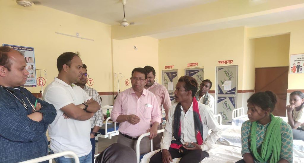 श्री पाणिग्राही ने बीएमओ श्री पुष्पेन्द्र वैष्णव से मरीजों के द्वारा दिए जा रहे उपचार के संबंध में जानकारी ली और सतत् उपचार करने के निर्देश दिए। इसके साथ ही किसी भी प्रकार की आवश्यकता और इलाज के बारे में अवगत कराने के लिए कहा। स्वास्थ्य सुरक्षा की दृष्टि से रानीगढ़ छुइहा में स्वास्थ्य विभाग का कैम्प लगाया गया, जिसमें मरीज मिलने की स्थिति में उसका तात्कालिक इलाज किया जा सके।