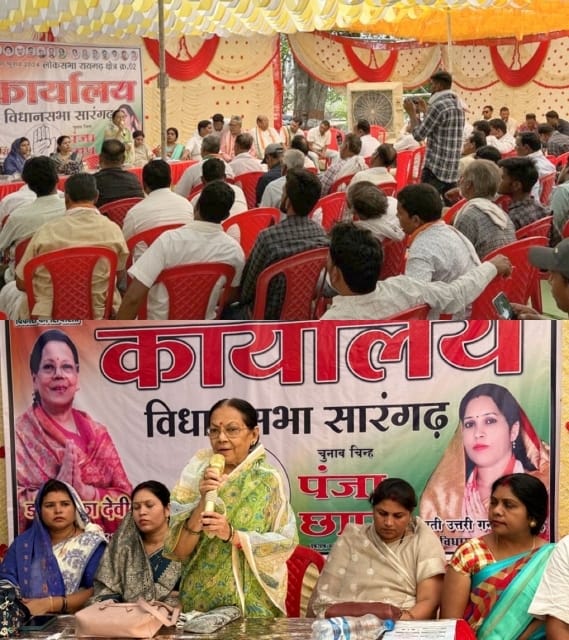 राजा पुष्पा देवी सिंह पूर्व सांसद ने सभी कांग्रेस नेताओं का कार्यकर्ताओं का अभिवादन करते हुए कहा कि आज हम सबको मिलकर सारंगढ़ विधानसभा क्षेत्र से मेनका देवी सिंह कांग्रेस की प्रत्याशी को बड़े अंतर से लीड दिलानी है। पूरा लोकसभा क्षेत्र व प्रदेश सारंगढ़ की जनता को निहार रहा है, सारंगढ़ अपने घर की प्रत्याशी को और सारंगढ़ की प्रमुख मांग रेल लाइन, सड़क, स्वास्थ्य सुविधा, शिक्षा जैसे विषयों को सड़क से सदन तक पहुंचाने के लिए एक शिक्षित महिला प्रत्याशी डॉ मेनका देवी के रूप में आपके साथ हमेशा खड़े रहेंगी, आप सबसे अपील है कि आप कांग्रेस के पंजा छाप में दो नंबर का बटन दबाकर डॉक्टर मेनका देवी सिंह के पक्ष में मतदान करें और अपने बूथ में घर-घर जाकर जनता से सहयोग मांगे और उन्हें बताएं कि कांग्रेस के आने पर आपको और आपके बच्चों को क्या लाभ मिल सकता है। सारंगढ़ राज परिवार में कभी किसी का नहीं बिगड़ा हमेशा सारंगढ़ की जनता के हित के लिए आप सबके बीच रहे हैं। आप सभी को बधाई और शुभकामनाएं।