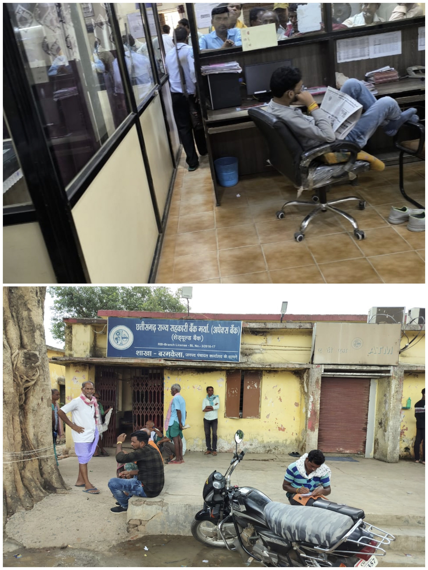 सारंगढ़ बिलाईगढ़ :- सारंगढ़ जिले मे बैंक कर्मियों कि मनमानी चरम पर है बरमकेला ब्लॉक मे अपैक्स बैंक कर्मियों कि मनमानी किस तरह से आप तस्वीर देख कर अंदाजा लगा सकते हैं ब्रांच मे किसानो कि भीड़ लगी हुई है किसानो के लिए बैठने तक कि जगह नहीं किसान भीड़ से परेशान हैं तो वहाँ बैंक कर्मी मजे से अख़बार पढ़ते नजर आ रहे हैं देखिए इस तरह कि मनमानी से किसान बेहद दुखी हैं किसान खुद के पैसे आहरण करते आते हैं और ठोकरे भी खाते हैं बताया जा रहा है कि एक ही ब्रांच होने के कारण किसानो को काफ़ी परेशानी का सामना करना पड़ रहा है जिससे आए दिन किसान बैंक कार्य लेन देन के लिए दर दर भटकने को मजबूर हैं पर इनकी व्यवस्था एवं इनकी परेशानी को सुनने कोई जिम्मेदार आगे नहीं आते हैं..