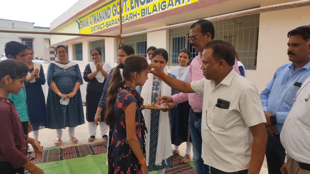सारंगढ़ बिलाईगढ़ :- जिले के स्वामी आत्मानंद शासकीय इंग्लिश मीडियम स्कूल बरमकेला में हर्षोल्लास के साथ शाला प्रवेश उत्सव मनाया गया। इस कार्यक्रम के मुख्य अतिथि नगर पंचायत अध्यक्ष हेमसागर नायक, विशिष्ट अतिथि नगर पंचायत उपाध्यक्ष रामकुमार नायक एवं जिला शिक्षा अधिकारी एस.एन.भगत, सीएमओ अनिल सोनवानी, पार्षद सहित पालक एवं गणमान्य नागरिक उपस्थित थे। अतिथियों का पुष्प गुछ से स्वागत किया गया। सर्वप्रथम नन्हे-मुन्ने बच्चों विद्यार्थियों को आरती उतारकर तिलक लगाकर स्वागत किया गया।
