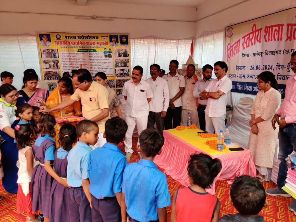 जिला शिक्षा अधिकारी श्री एस एन भगत ने अपने व्यक्तव्य में कहा कि स्कूल एक मंदिर भी है और शिक्षालय भी है। स्कूल जाने को लेकर बच्चों में एक अलग उत्सुकता रहती है। शासन के निर्देशों को ध्यान में रखते हुए बच्चों को नि:शुल्क पुस्तकें भी दी जाती है, जो छात्राएं दूर से स्कूल आती हैं उनके लिए साइकिल का भी वितरण किया जाता है। शिक्षा से ही हमारा सर्वांगीण विकास होता है और हम भी इस लक्ष्य को प्राप्त करने के लिए प्रतिबध्द हैं। इसलिए सभी यह संकल्प लें कि शिक्षा की महत्ता को समझें और बच्चों के बेहतर भविष्य हेतु कार्य करें। शाला प्रवेश उत्सव में सांस्कृतिक कार्यक्रम की कड़ी में शासकीय कन्या शाला द्वारा “स्कूल चलें हम” गीत पर नृत्य किया गया। मोना माडर्न स्कूल द्वारा “शिक्षा का सूरज है निकला, हो रहा है सूरज उजाला” गीत की प्रस्तुति दी गई। इसके अलावा अशोका पब्लिक स्कूल द्वारा शास्त्रीय नृत्य प्रस्तुत किया गया एवं सेजेस सारंगढ़ के छात्रों द्वारा स्कूल चलें हम गीत पर प्रस्तुति दिया गया। इस कार्यक्रम में अतिथि पूर्व विधायक केराबाई मनहर, भुवन मिश्रा, शिव कुमारी चौहान, चंद्रिका सिंह ठाकुर, दुर्गा प्रताप सिंह राजपूत, टीकाराम पटेल,मनोज जायसवाल, अजीश अग्रवाल, सारंगढ़ एसडीएम अनिकेत साहू, परियोजना निदेशक हरिशंकर चौहान एवं डिप्टी कलेक्टर वर्षा बंसल सहित बड़ी संख्या में स्कूली बच्चे उपस्थित थे।