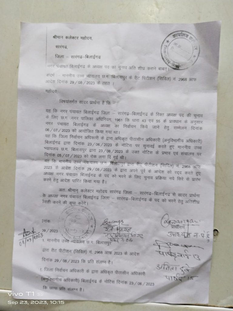 सूत्रों के मुताबिक यहां का विकास कार्य पूरी तरह से प्रभावित है तथा नियम वृद्धि कार्यों को लगातार अंजाम देते हुए भ्रष्टाचार को बढ़ावा दिया जा रहा है। साथ ही हाई कोर्ट के आदेश के बाद राज्य निर्वाचन आयोग छत्तीसगढ़ के द्वारा भी जिला कलेक्टर सारंगढ़ एवं जिला निर्वाचन अधिकारी जिला सारंगढ़ बिलाईगढ़ को हाई कोर्ट के आदेश का हवाला देते हुए अविलंब आवश्यक कार्यवाही कर आयोग को तत्काल अवगत कराने का निर्देश भी दिया गया है । बावजूद इसके पखवाड़े भर बाद कार्यवाही सिफर होने से जिला एवं स्थानीय प्रशासन के ऊपर सवालिया निशान उठ रहा है। नपं बिलाईगढ़ के पूर्व नपं अध्यक्ष द्वारका देवांगन, उपाध्यक्ष नरेश देवांगन , पार्षद कन्हैया खुटें , अनीता दिलीप दुबे , सियाराम कहार अमेरिका कहार व निर्वाचित जनप्रतिनिधियों, विधानसभा के जागरूक कार्यकर्ताओं ने इस पर कड़ा एतराज जताते हुए अविलंब चुनाव कराने की मांग किया है।