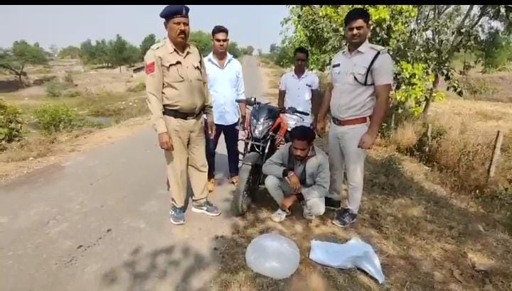 नकटीडीह बेलटीकरी मार्ग में ग्राम डुरूमगढ़ के पास आबकारी टीम के द्वारा एक बिना नंबर प्लेट का बजाज पल्सर एनएस दो पहिया वाहन को रुकवाया गया तथा वाहन चालक से पूछताछ की गई वाहन चालक ने अपना नाम उमेशदास मानिकपुरी होना बताया, उसे तलाशी देने के लिए कहा गया। गवाहों के समक्ष उनकी पूर्वानुमति से उनकी तथा उनके द्वारा प्रयुक्त वाहन में रखे प्लास्टिक बोरी की विधिवत तलाशी ली गई। तलाशी में बोरी में एक सफेद रंग के बड़ी पालीथीन में भरा 10.0 लीटर कच्ची महुआ शराब के समान तरल को बरामद किया गया पूछताछ करने पर वाहन चालक ने बताया कि यह मदिरा विक्रय करने के लिए, ले के जा रहा है। बरामद तरल को मौके पर गवाहों के समक्ष विधिवत परीक्षण करने पर उसे कच्ची महुआ शराब होना पाए जाने पर सीलबंद कर मदिरा एवं मदिरा परिवहन में प्रयुक्त दो पहिया वाहन को कब्जा में आबकारी विभाग द्वारा लिया गया है एवं आरोपी के विरुद्ध छत्तीसगढ़ आबकारी अधिनियम 1915 की धारा 34(2)59(क) का प्रकरण दर्ज कर विवेचना में लिया गया है। आरोपी को अग्रिम कार्यवाही हेतु माननीय न्यायालय में पेश किया गया है। इस कार्यवाही में सहायक आबकारी आयुक्त सोनल नेताम, सहायक जिला आबकारी अधिकारी संतराम वर्मा,आबकारी उप निरीक्षक विपिन कुमार पाठक, आबकारी मुख्य आरक्षक फागुलाल टण्डन एवं सुरक्षा गार्ड लोचन साहू का विशेष योगदान रहा।