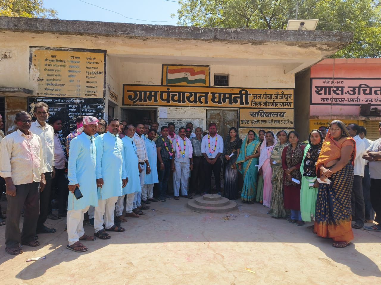 सक्ती :- जनपद पंचायत जैजैपुर के ग्राम पंचायत धमनी में 8 मार्च शनिवार 2025 को ग्राम पंचायत धमनी के सरपंच व 15 वार्ड के पंचों द्वारा सर्व सहमति से उपसरपंच का निर्विरोध चयन किया हैं जिसमें उपसरपंच ग्राम पंचायत धमनी के वार्ड क्रमांक 04 के पंच युवराज साहू को निर्विरोध उपसरपंच चुना गया है युवराज साहू एक सामाजिक कार्यकर्ता के साथ-साथ राजनीति के क्षेत्र में भी सक्रिय रहते हैं उनके उप सरपंच बनने से लोगों में काफी उत्साह और खुशी का माहौल है ग्राम वासियों ने युवराज साहू को बधाई और शुभकामनाएं दिए हैं