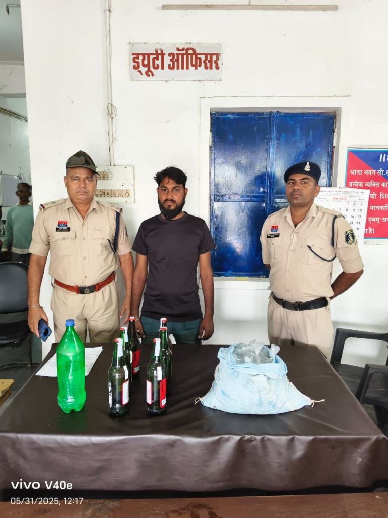 2. अप0क्रं0 252/2025 धारा- 34(2)59(क)आबकारी एक्ट में दिनांक- 30.05.2025 को जरिये मुखबिर सूचना मिला कि ग्राम टिमरलगा तालाब के पास एक व्यक्ति अवैध देशी प्लेन शराब ब्रिकी कर रहा है कि सूचना पर हमराह स्टाफ एवं गवाहान के घटना स्थल टिमरलगा तालाब के पास जाकर घेराबंदी कर रेड कार्यवाही कर युवराज पटेल पिता किर्तन प्रसाद पटेल उम्र 26 वर्ष सा0 गुडेली के कब्जे से एक पीला रंग के प्लास्टिक बोरी में रखा 40 नग प्रत्येक 180 एमएल वाली जुमला- 07.200 लीटर कीमती- 3200 रू0 जप्त कर कब्जा पुलिस लिया गया बाद आरोपी को विधिवत गिरफ्तार कर न्यायिक रिमाण्ड पर जेल भेजा गया। उपरोक्त कार्यवाही में निरीक्षक कामिल हक, उनि अमृत भार्गव, प्र0आर0-19 धनेश्वर उरांव आरक्षक- ओमचंद साहू, सुरेन्द्र पटेल, महिला आर. आरती गोस्वामी एवं समस्त स्टाफ की प्रमुख भूमिका रही।