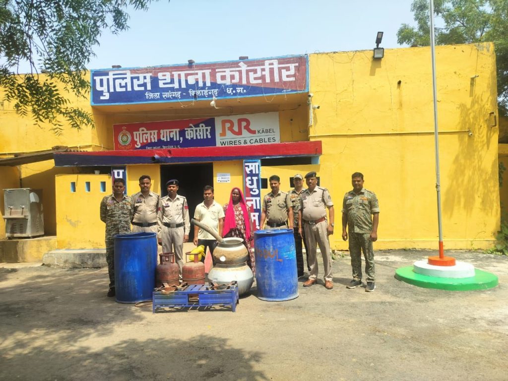 01.गिरधर लहरे पिता सुधराम लहरे उम्र 34 वर्ष साकिन कोसीर के कब्जे से कुल 160 लीटर महुआ शराब एवं 02.लता लहरे पति गिरधर लहरे उम्र 32 वर्ष साकिन कोसीर से कुल 175 लीटर महुआ शराब कुल 335 लीटर कच्ची महुआ शराब एवं शराब बनाने की सामग्री गैस चूल्हा,सिलेंडर,बर्तन कुल कीमती 33500 रूपये को जप्त कर आरोपीगण के विरूद्ध अपराध क्रमांक 130/2025 धारा 34 (2),59(क) आबकारी एक्ट कायम कर दिनांक 31.05 2025 को गिरफ्तार किया जाकर माननीय न्यायालय रिमाण्ड पर भेजा गया है।