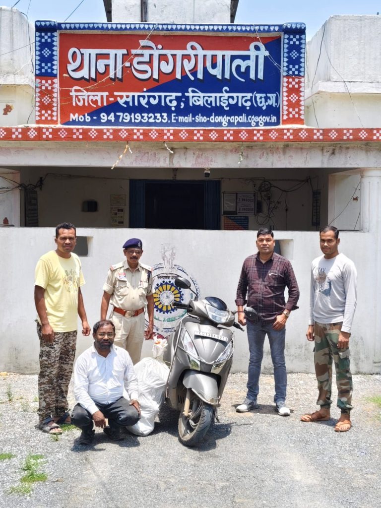 सारंगढ़ बिलाईगढ़ :- श्रीमान पुलिस अधीक्षक महोदय श्री आंजनेय वार्ष्णेय के द्वारा जिले के सभी थाना/चौकी प्रभारियों को जुआ, सट्टा, शराब, अवैध मादक पदार्थ गांजा में संलिप्त व्यक्तियों के उपर कड़ी से कड़ी कार्यवाही करने की निर्देश पर अति0 पुलिस अधीक्षक श्रीमती निमिषा पाण्डेय एवं श्रीमान उप पुलिस अधीक्षक मुख्यालय सारंगढ़ श्री अविनाश मिश्रा के कुशल मार्गदर्शन में थाना प्रभारी भगवती प्रसाद कुर्रे के नैतित्व मे आज दिनांक 02/06/2025 को जरिये मुखबीर सुचना पर उडिसा से आने वाली जंगल रास्ता पर ग्राम झाल बाजार तिरहा के पास घेराबंदी कर उडिसा तरफ से आ रही ग्रे रंग के टीवीएस जुपिटर वाहन क्रमांक CG 13 BA 0213 के चालक मालेश्वर साहू के कब्जे से टीवीएस जुपिटर वाहन के डिक्की में रखा हुआ 11 पैकेट तथा गाड़ी के सामने में एक सफेद रंग के कपड़ा के थैला में रखा हुआ 04 पैकेट कुल 15 पैकेट मादक पदार्थ गांजा कुल 15 किलो 375 ग्राम एवं एक ग्रे रंग के टीवीएस जुपिटर वाहन क्रमांक CG 13 BA 0213 एवं घटना मे प्रयुक्त 02 नग मोबाईल जुमला किमती लगभग 190000 रूपये को जप्त कर धारा 20 बी NDPS ACT के तहत विधिवत कार्यवाही कर आरोपी मालेश्वर साहू के विरूद्ध थाना डोंगरीपाली मे अपराध क्रमांक 24/2025 धारा 20 बी NDPS ACT पंजीबद्ध कर आरोपी मालेश्वर साहू को न्यायिक रिमांड पर जेल भेजा गया है।