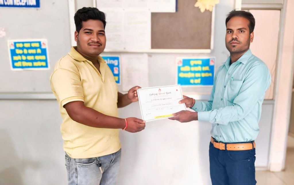 समाज सेवक टुकेश्वर मानिकपुरी रक्तदान कर दिया मानवता का परिचय बता दे की समाज सेवक टुकेश्वर मानिकपुरी लोगों के मदद करने के लिए हमेश तत्पर रहते है