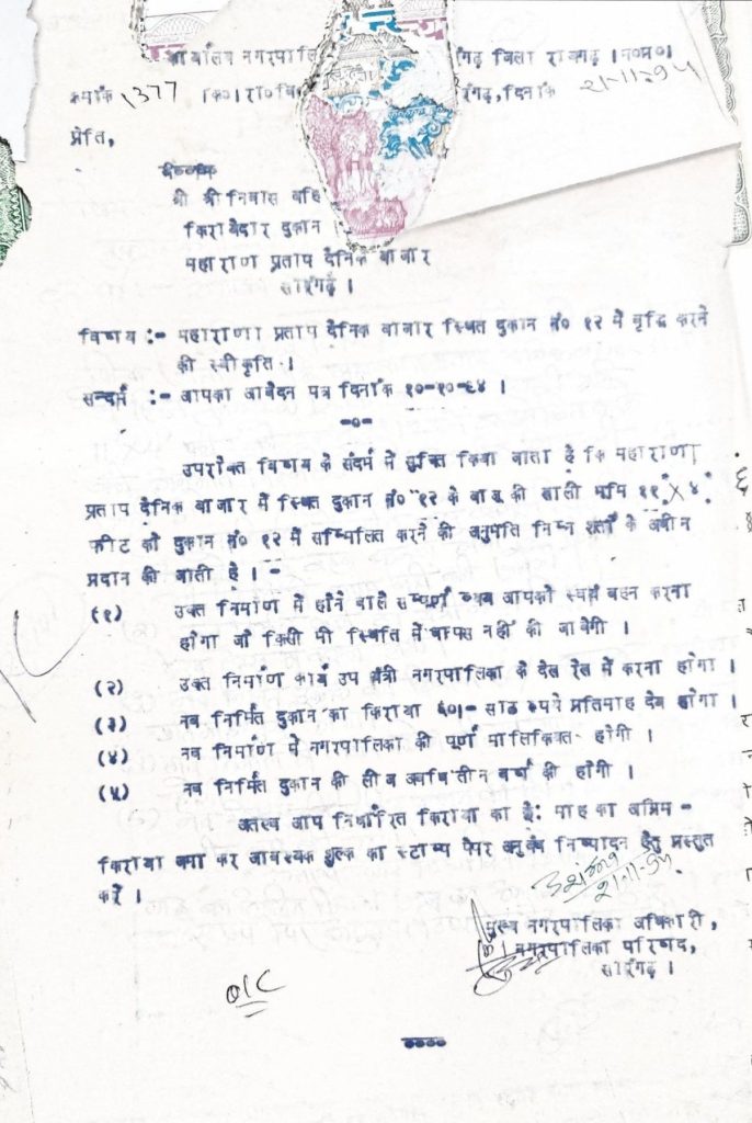 पूर्व अध्यक्ष अजय गोपाल ने 07 नवंबर 2009 को प्रस्ताव क्रमांक 598 मे कृष्ण कुमार निषाद को खाड़ाबन्द के नीचे मूत्रालय के बगल मे 8×8 फ़ीट जमीन को दुकान निर्माण हेतु लीज़ मे दिया था। महज 300 ₹ किराये पर ।
