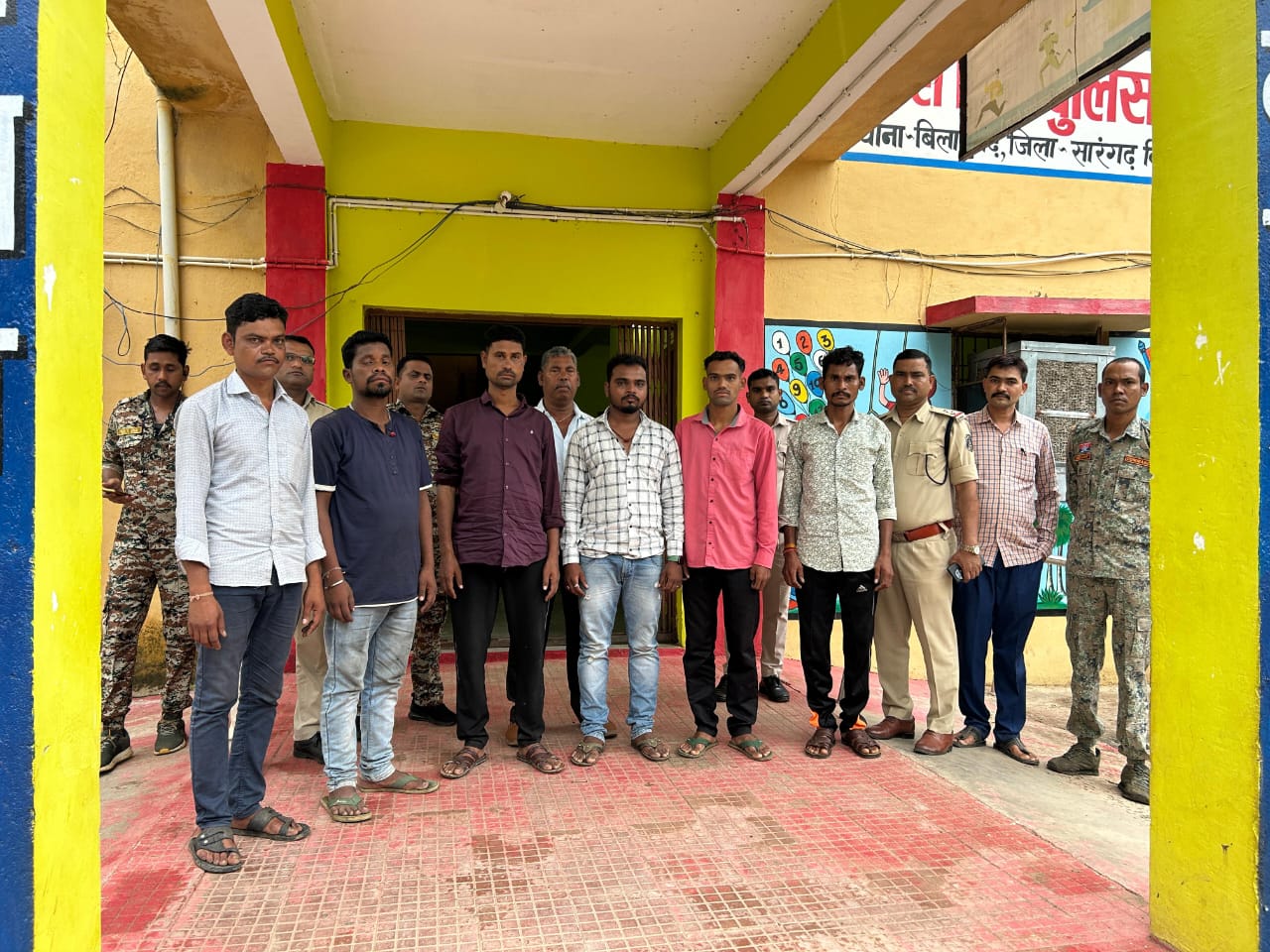 सारंगढ़ बिलाईगढ़ :- श्रीमान पुलिस अधीक्षक श्री अंजनेय वार्ष्णेय के निर्देशन पर तथा अतिरिक्त पुलिस अधीक्षक निमिषा पांडे अनु.अधि. पुलिस श्री विजय ठाकुर के मार्गदर्शन थाना प्रभारी उप निरी शिवकुमार धारी के नेतृत्व में ट्रैक्टर ड्राइवर को खंभे से बांधकर मारपीट करने वाले 07 आरोपी गिरफ्तार,सातों आरोपी को भेजा गया न्यायिक रिमांड पर