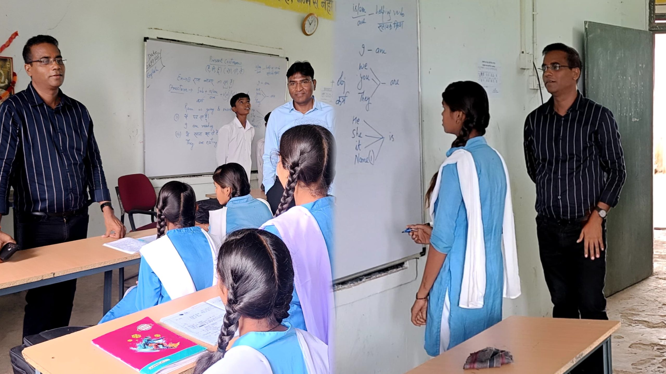 सारंगढ़ बिलाईगढ़ :- कलेक्टर डाॅ. संजय कन्नौजे ने सोमवार को दोपहर में सारंगढ़ विकासखंड के ग्राम पचपेड़ी, सुलोनी और उलखर स्थित स्कूलों का आकस्मिक निरीक्षण किया। पचपेड़ी के प्राथमिक शाला भवन और संकुल केन्द्र भवन का कलेक्टर ने निरीक्षण किया और बरसात में भवन की स्थिति का जायजा लेते हुए बच्चों की पढ़ाई का अवलोकन किया। इसी प्रकार हाईस्कूल सुलोनी में कलेक्टर ने कक्षाओं के संचालन का अवलोकन किया। कलेक्टर डाॅ. कन्नौजे ने कक्षा नवमीं में स्कूली बच्चों को काल (टेन्स) पढ़ाया। उन्होंने प्रेजेन्ट सिम्पल टेन्स में बच्चों को ‘‘मैं स्कूल जाता हूं’’ को विस्तार से समझाया। इसी प्रकार कक्षा दसवीं में बच्चों को गणित के सवाल कैसे हल किया जाता है, को ब्लैक बोर्ड में पढ़ाया।