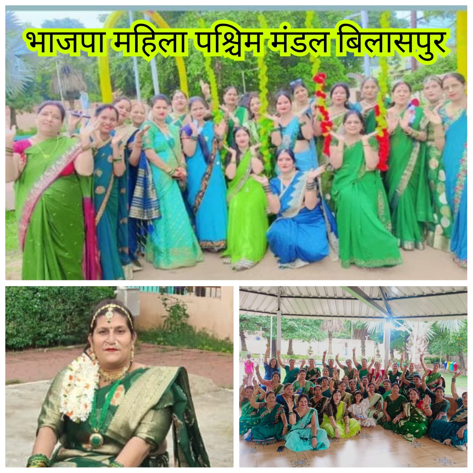 सावन सुंदरी में प्रथम अर्चना गौर,द्वितीय अंजू श्रीवास,तृतीय आशा पांडे,को सावन सुंदरी का ख़िताब मिला इस सावन के कार्यक्रम मे महिला साथी सावन उत्सव में वार्ड नंबर 16 की प्रभारी सुश्री मीनाक्षी यादव मंडल मंत्री सांसद प्रतिनिधि बूथ अध्यक्ष श्रीमती सरिता ठाकुर मंडल विशेष आमंत्रित सदस्य महिला मोर्चा मंडल प्रभारी अंजना सुकांत वर्मा,महिला मोर्चा मंडल उपाध्यक्ष श्रीमती श्रद्धा सुभाष तिवारी वार्ड 21 की पार्षद जोन 3 की अध्यक्ष श्रीमती मधुबाला टंडन संयोजक श्रीमती रंजीता कौशले मंडल उपाध्यक्ष श्रीमती सरिता खांडेकर, बूथ अध्यक्ष श्रीमती त्रिमणी टंडन मंडल विशेष आमंत्रित सदस्य श्रीमती कलावती दिवाकर बूथ अध्यक्ष श्रीमती स्मिता नामदेव श्रीमती शिमला शर्मा श्रीमती प्रभा मिश्रा