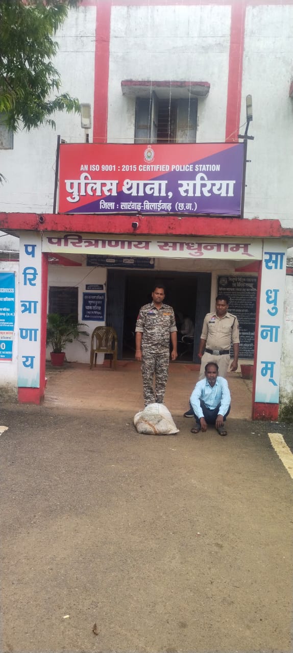 सारंगढ़ बिलाईगढ़ :- पुलिस अधीक्षक श्री आंजनेय वार्ष्णेय के द्वारा जिले के सभी थाना/चौकी प्रभारियों को जुआ, सट्टा, शराब, अवैध मादक पदार्थ गांजा में संलिप्त व्यक्तियों के उपर कड़ी से कड़ी कार्यवाही करने की निर्देश पर अति0 पुलिस अधीक्षक श्रीमती निमिषा पाण्डेय एवं उप पुलिस अधीक्षक मुख्यालय सारंगढ़ श्री अविनाश मिश्रा के कुशल मार्गदर्शन में थाना प्रभारी प्रमोद यादव के नेतृत्व मे दिनांक 18/08/2025 को जरिये मुखबीर सुचना पर ग्राम खैरगढ़ी निवासी गौतम चौहान पिता भुवनेश्वर चौहान उम्र 50 वर्ष सा खैरगढ़ी,थाना सरिया जिला सारंगढ़ बिलाईगढ़ के कब्जे से अवैध रूप से बिक्री करने हेतु रखें कुल 30 लीटर महुआ शराब को जप्त कर आरोपी के विरुद्ध धारा 34(2), 59 (क)आबकारी एक्ट का अपराध पंजीबद्ध कर विधिवत कार्यवाही कर आरोप को न्यायिक रिमांड पर जेल भेजा गया है।