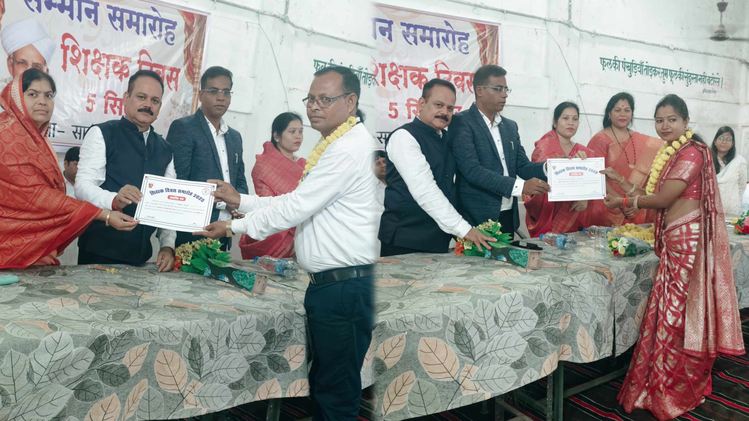 सारंगढ़ बिलाईगढ़ :- 5 सितंबर शिक्षक दिवस के अवसर पर जिला स्तरीय शिक्षकों का सम्मान समारोह पान पानी पायलगी की नगरी सारंगढ़ में सम्पन्न हुआ।सारंगढ़ विधायक श्रीमती उत्तरी गनपत जांगड़े जी ,बिलाईगढ़ विधायक श्रीमती कविता प्राण लहरें जी,जिला पंचायत अध्यक्ष श्री संजय भूषण पाण्डेय,कलेक्टर आदरणीय डॉ संजय कन्नौज, पूर्व विधायक श्रीमती केरा बाई मनहर , भाजपा जिला अध्यक्ष श्री ज्योति पटेल,अनुविभागीय अधिकारी सारंगढ़ डॉ वर्षा बंसल,