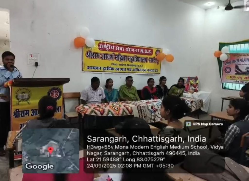 सारंगढ़ बिलाईगढ़ :- श्री राम आदर्श महिला महाविद्यालय सारंगढ़ मे धूम धाम से बड़े उल्लास के साथ मनाया गया NSS ( राष्ट्रीय सेवा योजना) का 56वा स्थापना दिवस मनाया गया कार्यक्रम की शुरुवात दीप प्रज्वल करके प्राम्भ की गई NSS स्वयं सेवको द्वारा गायन ,नाटक किया गया तथा NSS के महत्व और उद्देश्य को बताते हुए कार्यक्रम मे राष्ट्र की युवाशक्ति के व्यक्तित्व विकास हेतु युवा कार्यक्रम एवं खेल मंत्रालय भारत सरकार द्वारा संचालित एक सक्रिय कार्यक्रम होता है