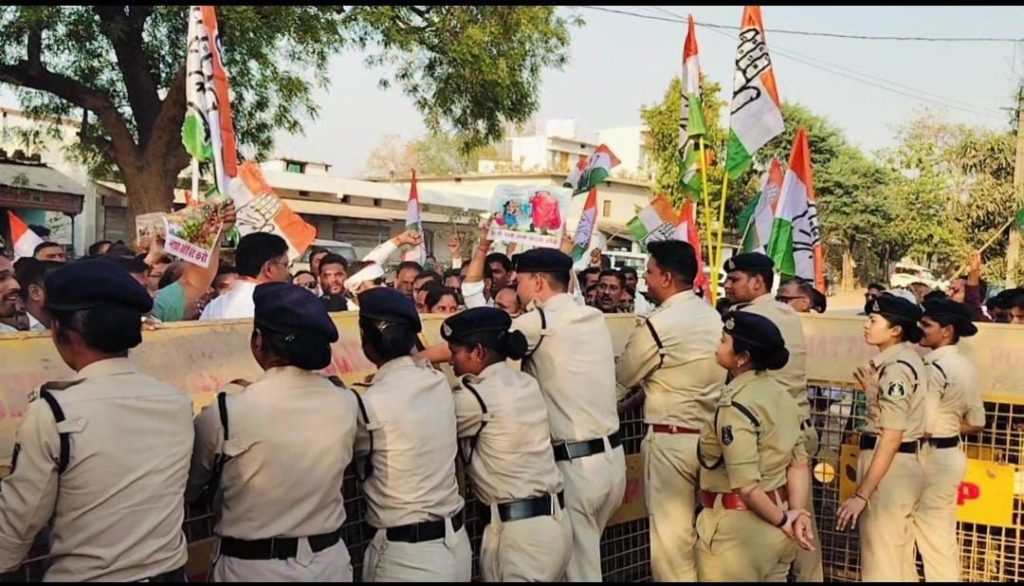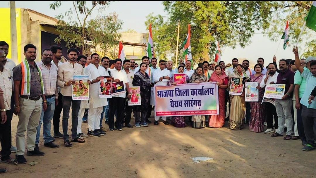 सारंगढ़ बिलाईगढ़ :- सारंगढ़-बिलाईगढ़ जिले में आज राजनीति उस समय गरमा गई जब जिला कांग्रेस कमेटी सारंगढ़ के नेतृत्व में सैकड़ों कांग्रेस कार्यकर्ताओं ने भाजपा सरकार के खिलाफ जोरदार प्रदर्शन किया। कांग्रेस कार्यकर्ताओं ने भाजपा कार्यालय का घेराव करते हुए जमकर नारेबाजी की और प्रदेश सरकार पर कई गंभीर आरोप लगाए। प्रदर्शन के दौरान कांग्रेस कार्यकर्ताओं ने महंगाई, किसानों की समस्या और भाजपा नेताओं पर लगे अफीम की खेती के आरोप को लेकर सरकार को घेरने की कोशिश की। इस दौरान माहौल काफी गर्म रहा और कांग्रेस कार्यकर्ता “भाजपा सरकार होश में आओ” जैसे नारे लगाते नजर आए। वहीं स्थिति को देखते हुए पुलिस प्रशासन भी पूरी तरह मुस्तैद दिखाई दिया। किसी भी प्रकार की अव्यवस्था से निपटने के लिए पुलिस बल तैनात रहा और पूरे कार्यक्रम पर कड़ी नजर रखी गई।