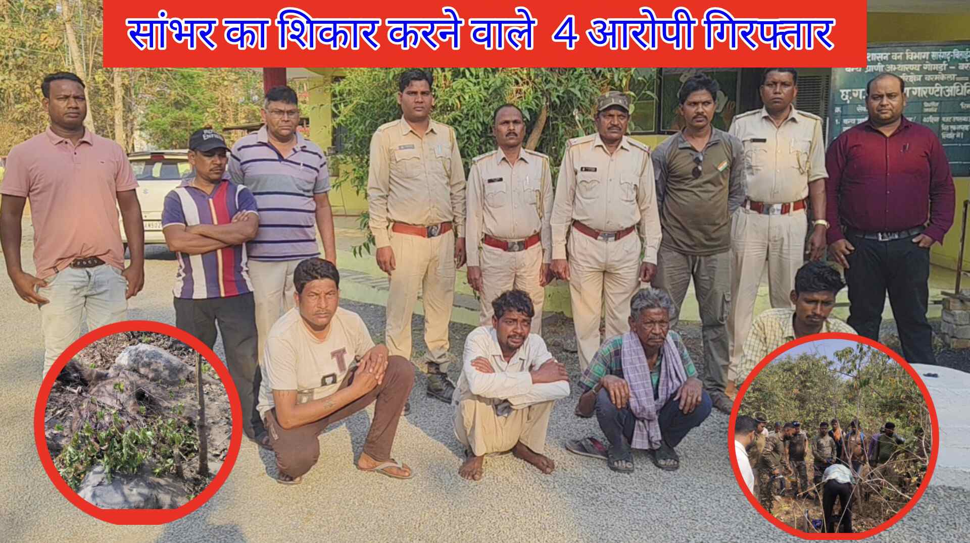 जानकारी के अनुसार गोमार्डा अभ्यारण्य वन परिक्षेत्र बरमकेला के झीलगीटार जंगल में कुछ दिन पहले एक सांभर के अवशेष मिलने से क्षेत्र में हड़कंप मच गया था। घटना के बाद वन विभाग की टीम आरोपियों की तलाश में जुट गई थी और डॉग स्क्वाड की मदद से जंगल और आसपास के इलाकों में जांच शुरू की गई थी।